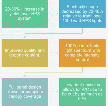 XtremeLUX technology used in a live Legal Cannabis grow has shown sizable increases in yield, quality and efficiency.